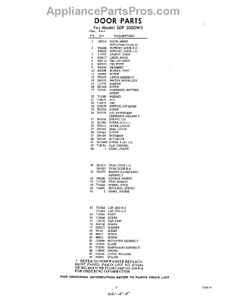 Parts for Whirlpool SDF5000W3: 05 - Section Parts