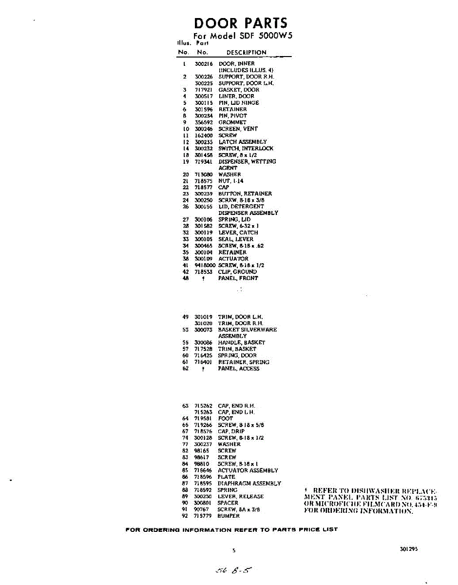 Parts for Whirlpool SDF5000W5: 05 - Section Parts