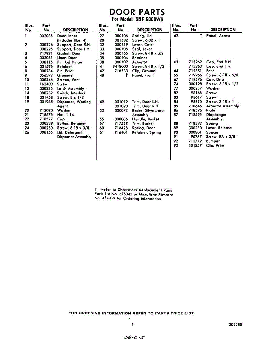 Parts for SDF5000W6