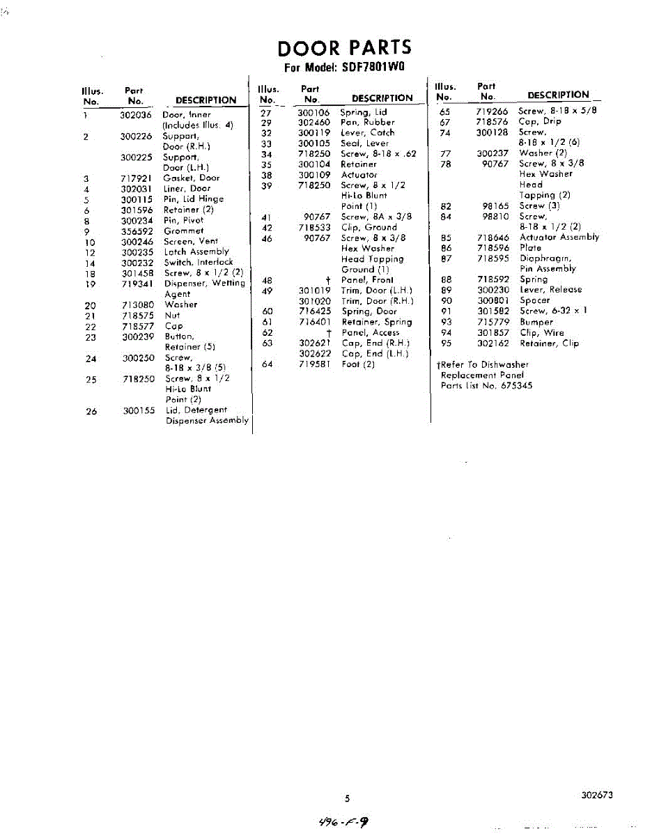 Parts for Whirlpool SDF7801W0: 05 - Section Parts