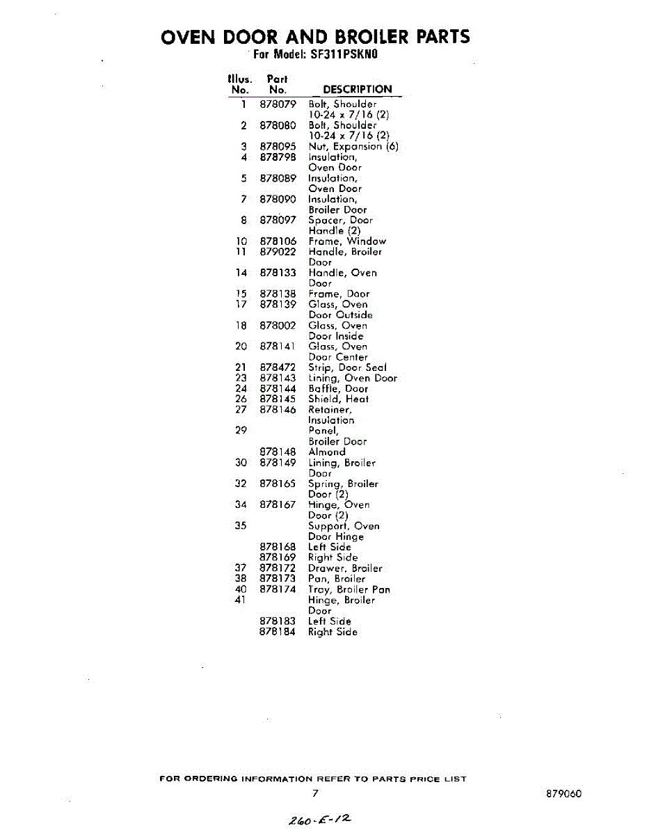 Parts for Whirlpool SF311PSKN0: 07 - Section Parts