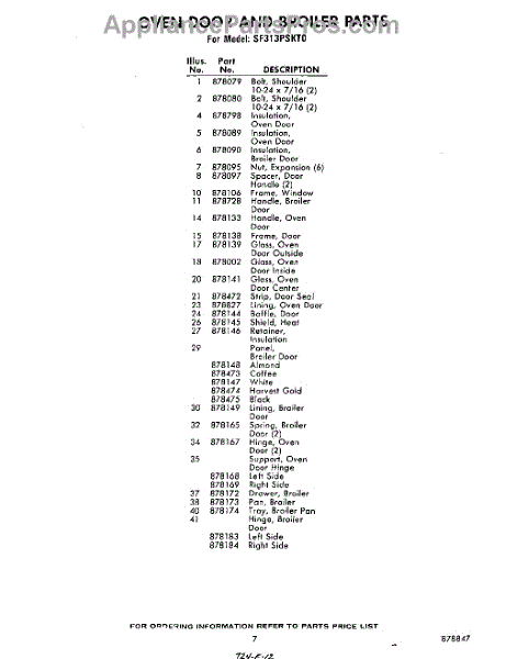 Parts for Whirlpool SF313PSKT0: 07 - Section Parts