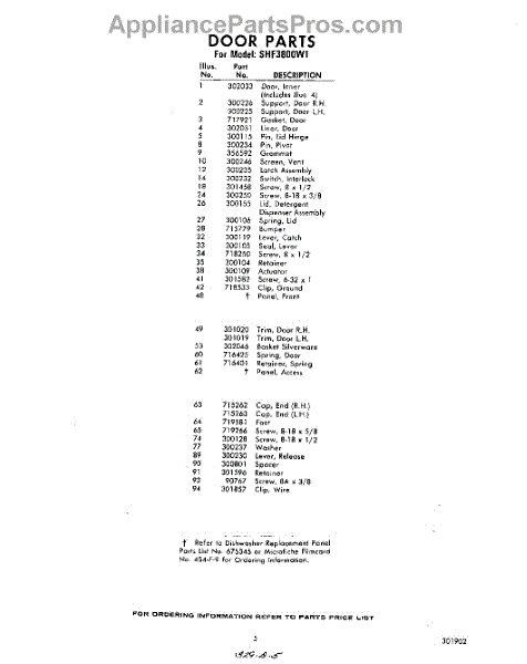 Parts for Whirlpool SHF3800W1: 05 - Section Parts