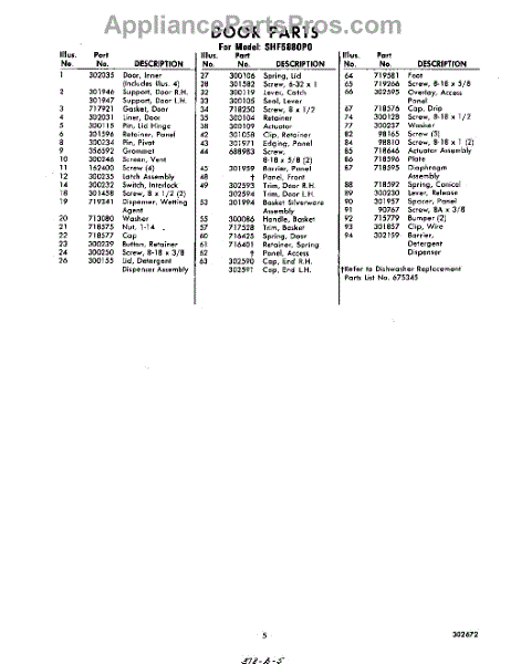 Parts for Whirlpool SHF5880P0: 05 - Section Parts