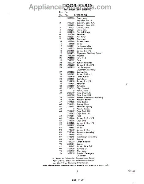 Parts for Whirlpool SHF6000W0: 05 - Section Parts