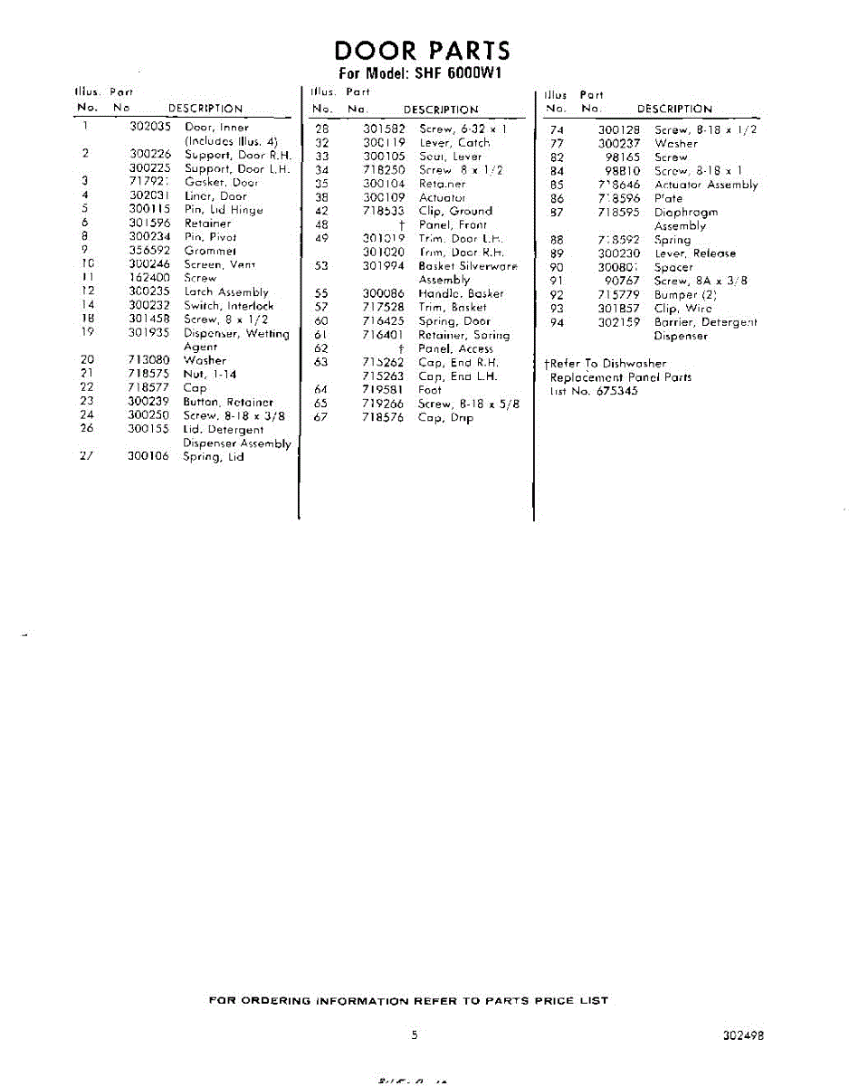 Parts for Whirlpool SHF6000W1: 05 - Section Parts