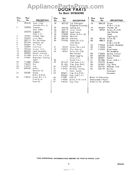 Parts for Whirlpool SHF6002W0: 05 - Section Parts
