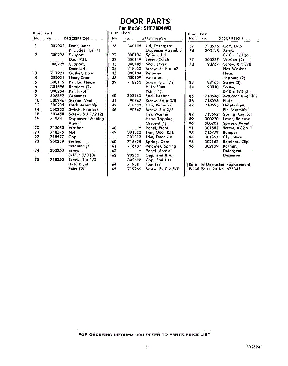 Parts for Whirlpool SHF7804W0: 05 - Section Parts