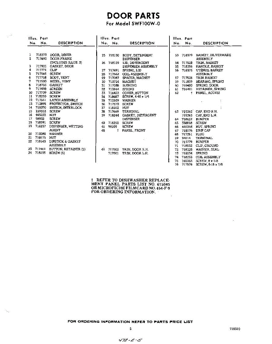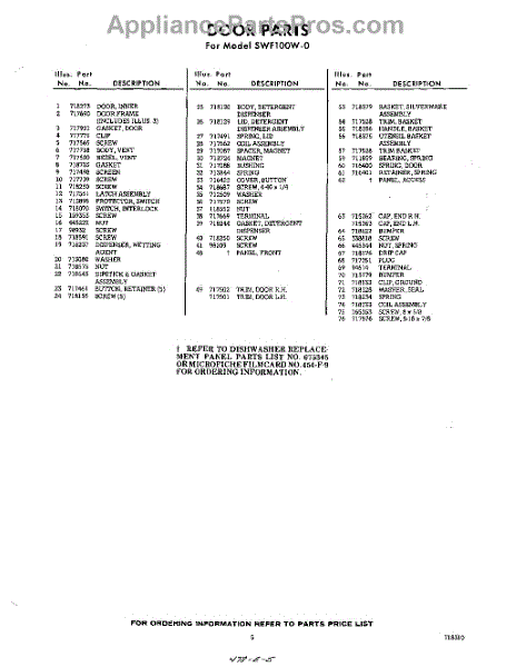 Parts for SWF100W0