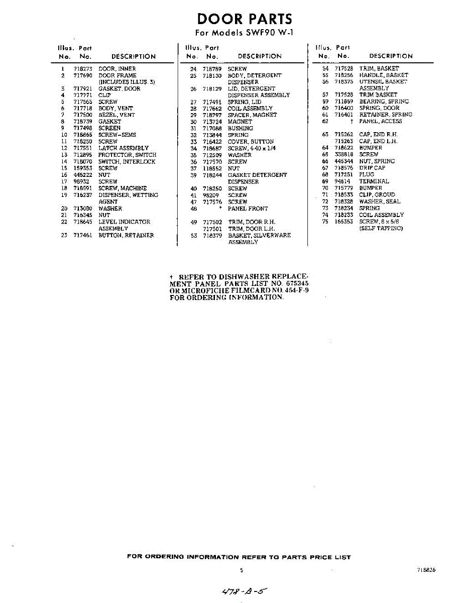 Parts for SWF90W1