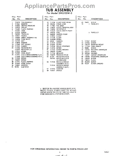 Parts for Whirlpool SWU100W0: 05 - Section Parts