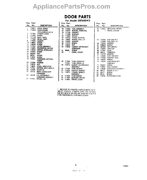 Parts for Whirlpool SXF600W3: 05 - Section Parts