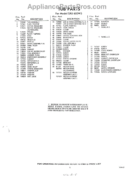 Parts for Whirlpool SXU600W5: 05 - Section Parts