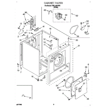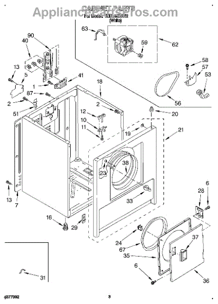 Fits all Whirlpool-made dryers (Whirlpool, Kenmore with prefix 110, Roper, KitchenAid, and Estate). Matching belt 341241 and rear support rollers 349241T. Whirlpool dryer repair manual 677818L.