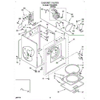 Fits all Whirlpool-made dryers (Whirlpool, Kenmore with prefix 110, Roper, KitchenAid, and Estate). Matching belt 341241 and rear support rollers 349241T. Whirlpool dryer repair manual 677818L.