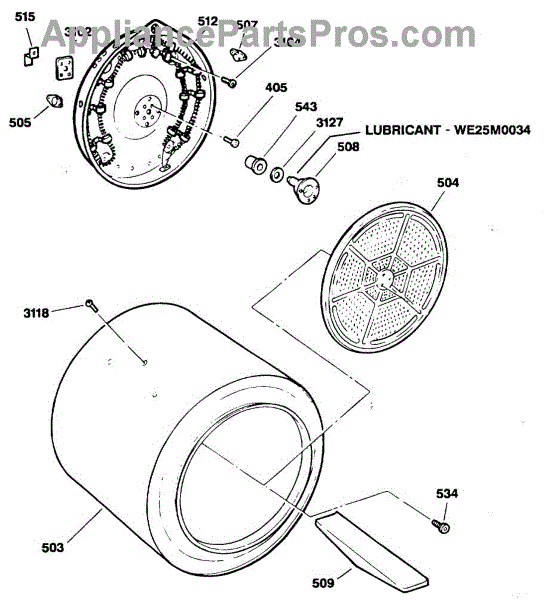 The Bearing Retainer is an OEM replacement part for GE electric dryers. It is an internal component that securely holds the drum bearing assembly in place to enable smooth rotation and provides structural bracing for the bearing during tumbling cycles.