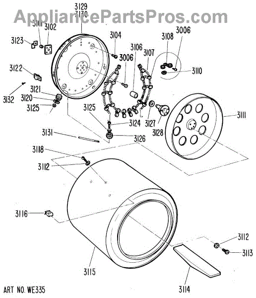 • Replaces the dryer drum that rotates to tumble clothes for even drying.