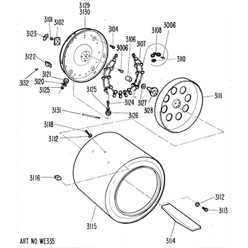 • Replaces the dryer drum that rotates to tumble clothes for even drying.