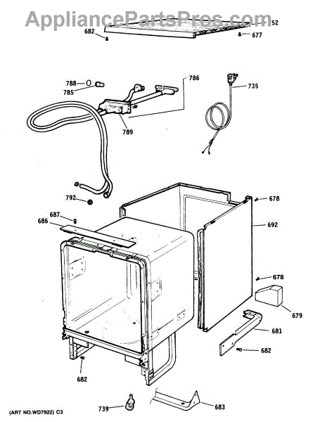 This hex washer-head screw secures dishwasher components like brackets, shields, and panels. Replacing a stripped or missing screw restores a tight fit and helps prevent vibration, rattling, and loose parts during operation.