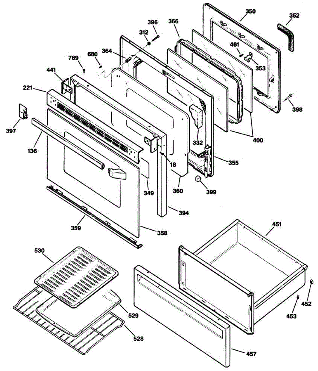 Replacement oven door handle for ranges. Installs on the oven door exterior to provide a grip for opening and closing. Replace if cracked, broken, or worn.