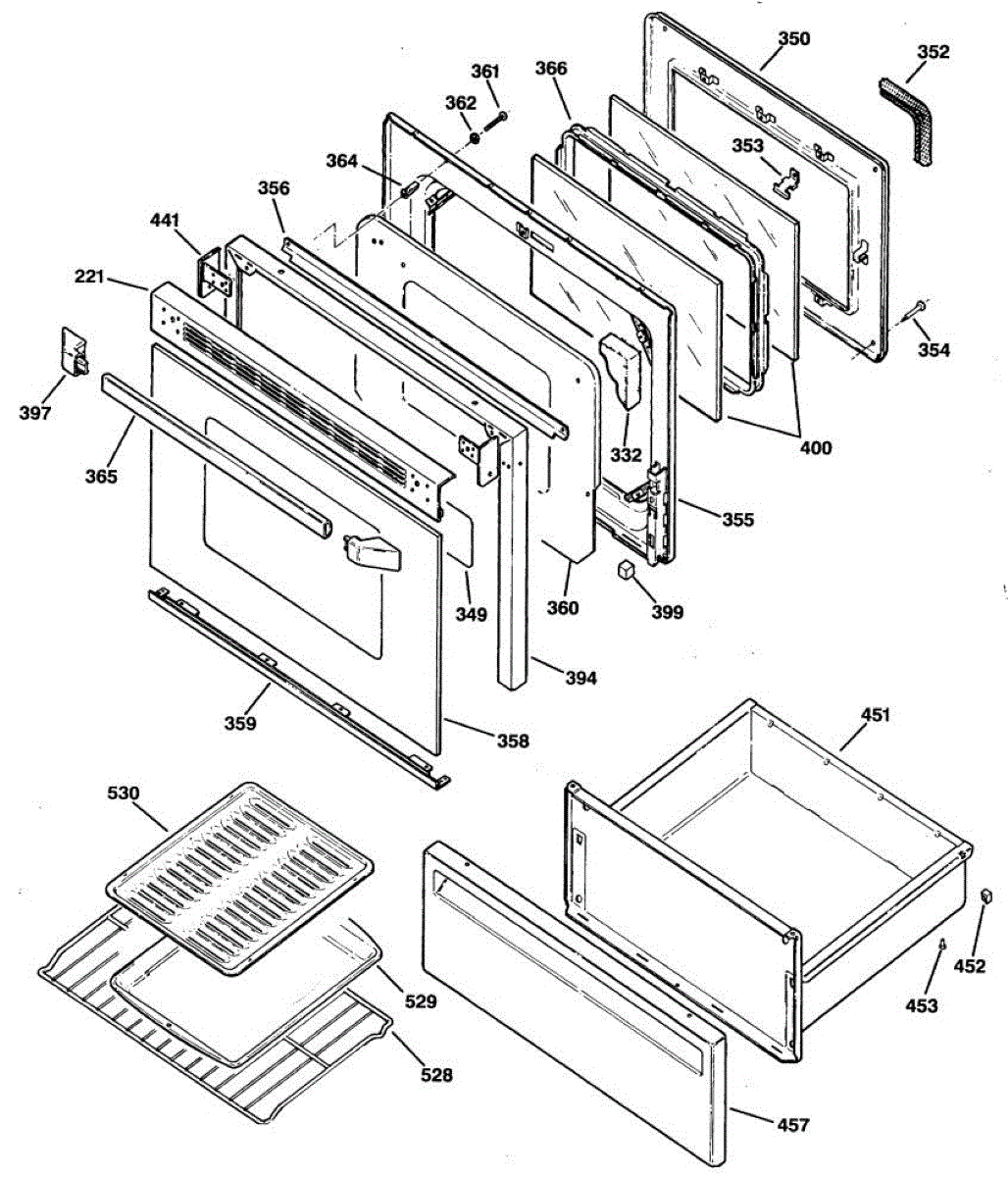 Replacement oven door handle for ranges. Installs on the oven door exterior to provide a grip for opening and closing. Replace if cracked, broken, or worn.
