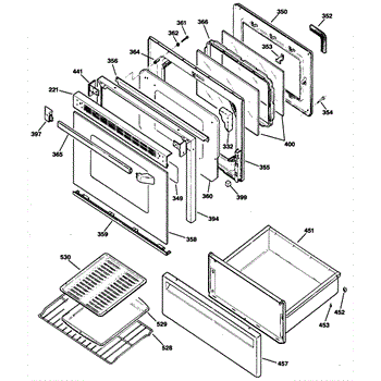 Replacement oven door handle for ranges. Installs on the oven door exterior to provide a grip for opening and closing. Replace if cracked, broken, or worn.