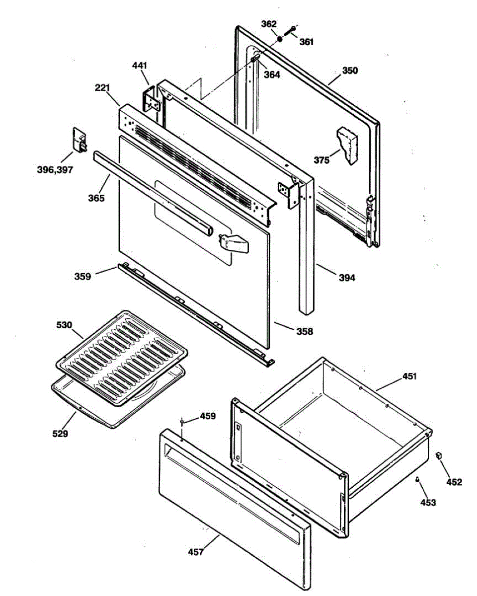 Replacement oven door handle for ranges. Installs on the oven door exterior to provide a grip for opening and closing. Replace if cracked, broken, or worn.