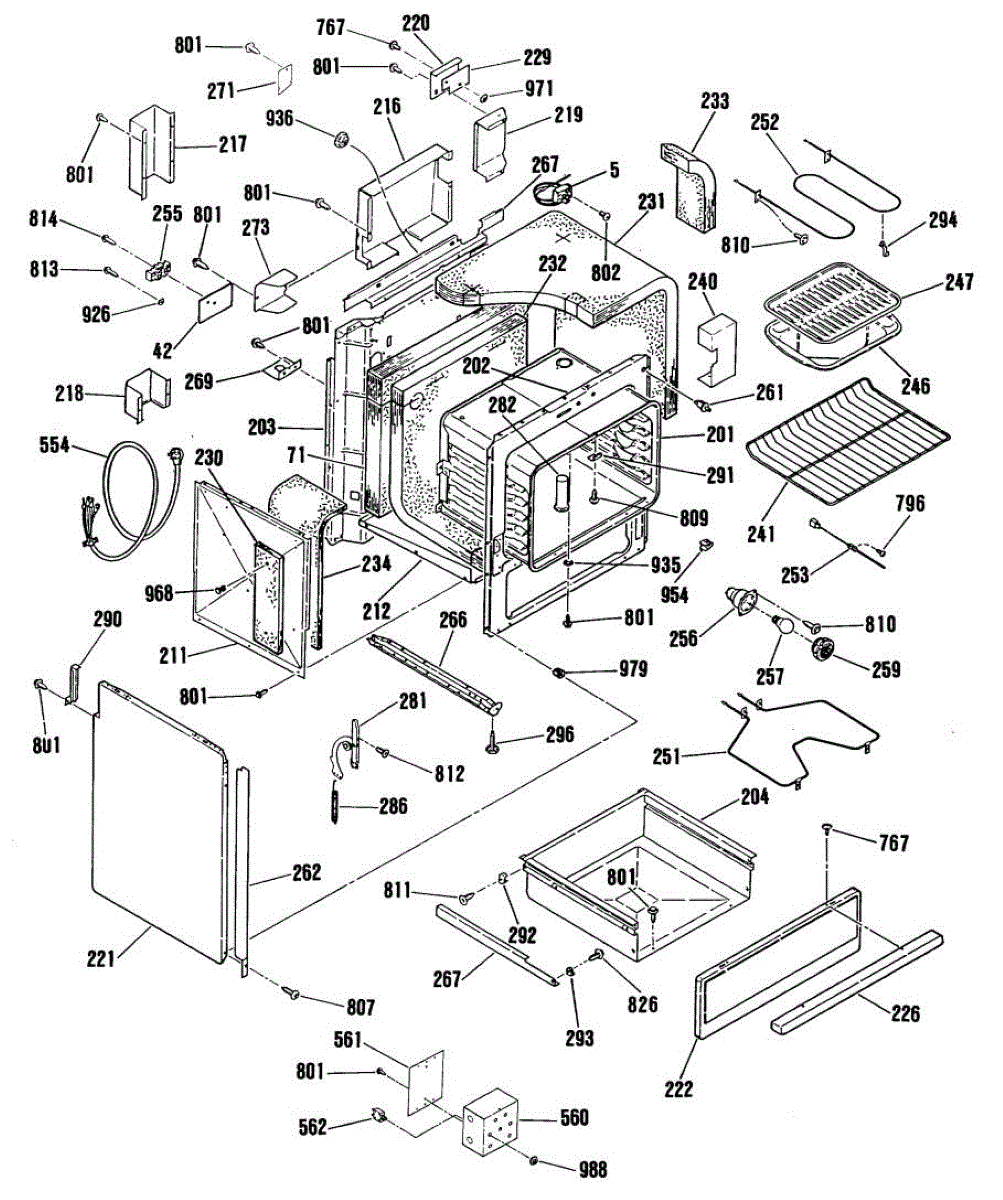 Left side oven door hinge provides smooth opening and closing operation. Replace if cracked, seized, worn, or binding. Mounts to oven cavity interior.