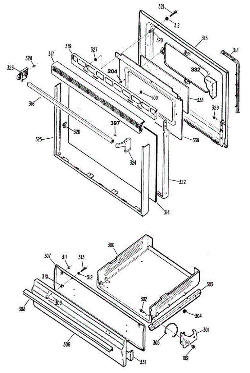 Broiler panel assembly for gas ranges. Replaces the structural weld assembly around the broiler compartment when cracked, damaged, or rusted.