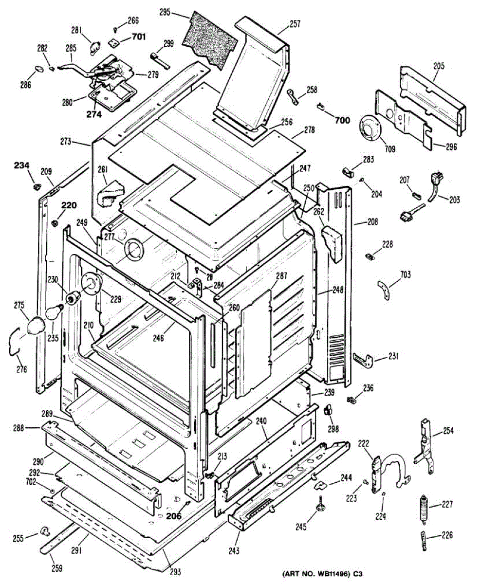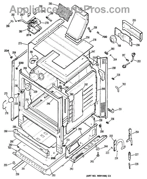 Frame weld assembly for ranges. Structural component that forms part of the cabinet framework. Replace if bent, cracked, or damaged during installation or use.