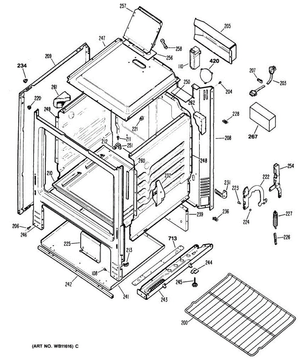 Frame weld for gas ranges. This structural component supports the range cabinet. Replace if cracked, broken, or damaged during repair work.