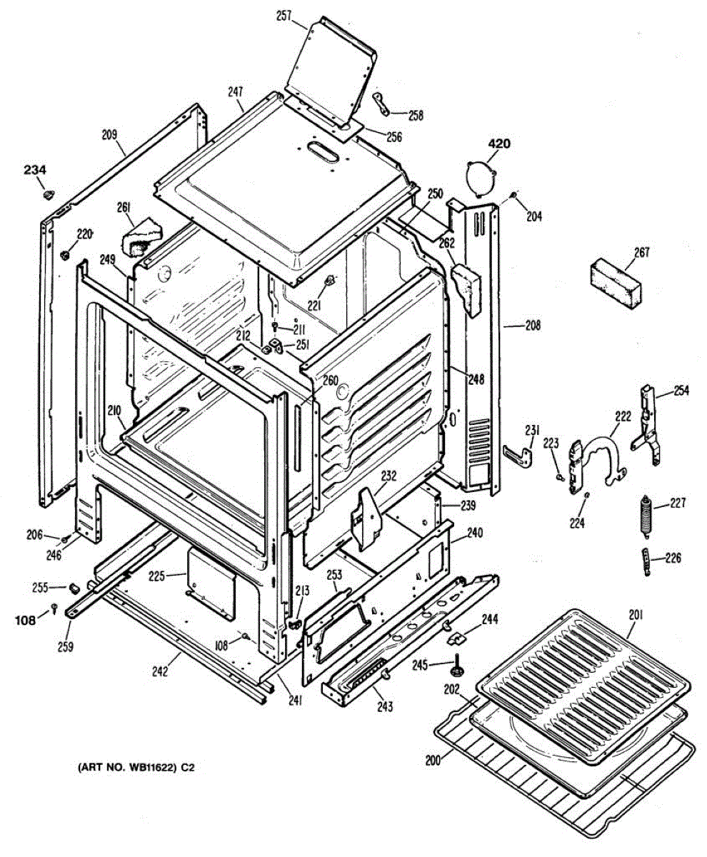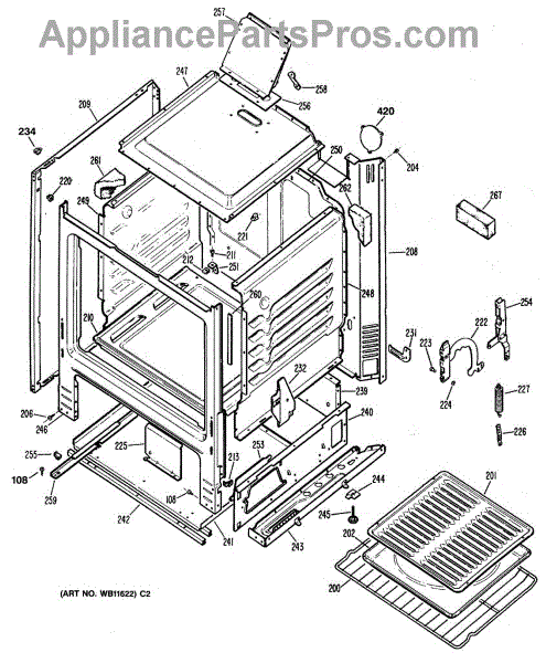 Frame weld for gas ranges. This structural component supports the range cabinet. Replace if cracked, broken, or damaged during repair work.