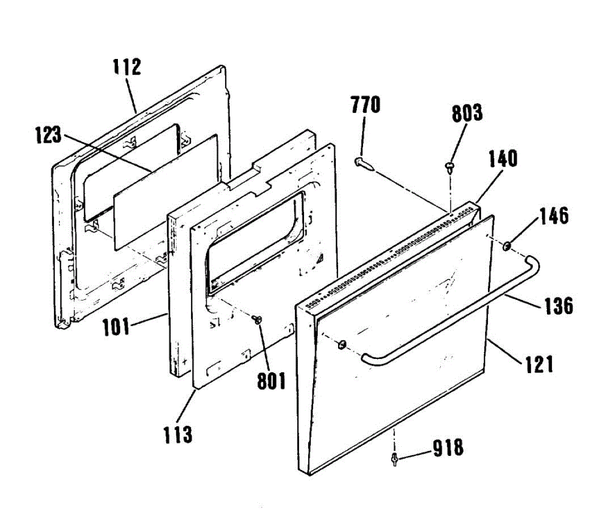 Center glass panel for oven door. Installs between inner and outer door panels. Replace if cracked, broken, or heat-damaged for safety and visibility.