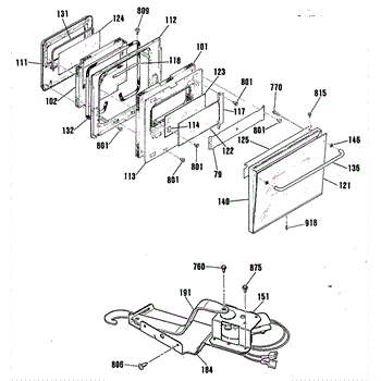 This oven door latch assembly secures the door during the self-clean cycle and reports lock status to the control. Replace a worn or failed latch to restore safe locking and reliable self-clean operation.
