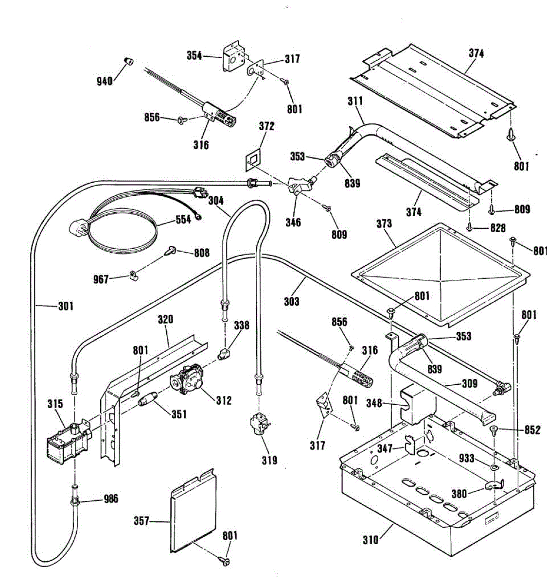 Tube assembly for ovens and ranges. Connects gas or water lines internally. Replace if cracked, corroded, leaking, or damaged during appliance repair.