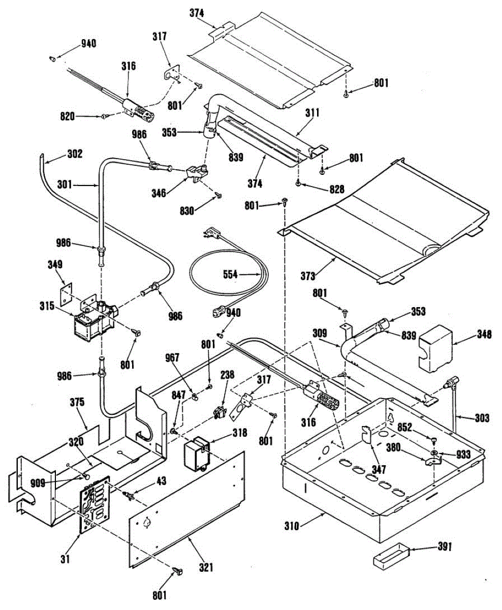 Sheet metal baffle that directs heat across the broiler chamber for even cooking. Replace if cracked, warped, or corroded to restore proper heat distribution.