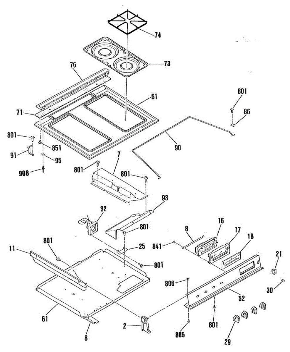 This main top assembly replaces a damaged or worn cooktop top to restore a flat, secure surface for burners and controls. It helps maintain proper alignment and appearance for electric or gas ranges with a removable top. What it does: