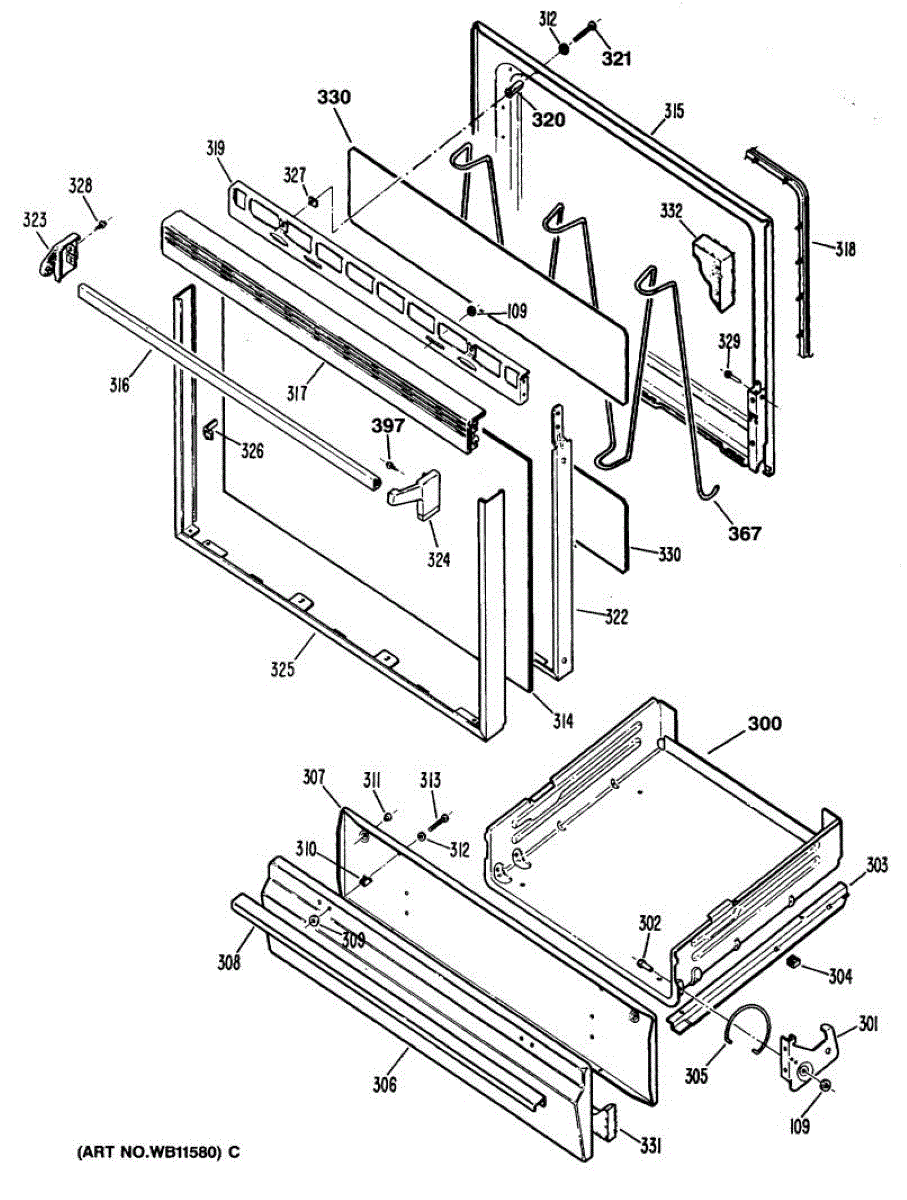 Broiler panel assembly for gas ranges. Replaces the structural weld assembly around the broiler compartment when cracked, damaged, or rusted.