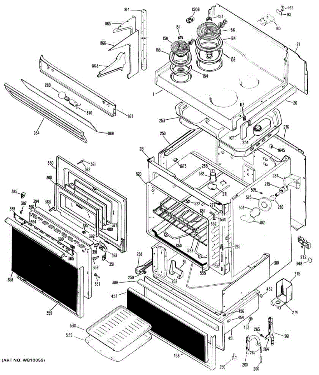 Broiler pan for ranges and ovens. Installs in main oven cavity to hold food under broiler element. Replace if cracked, warped, or heavily stained.