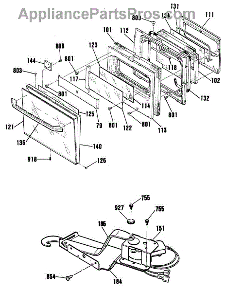 This oven door latch assembly secures the door during the self-clean cycle and reports lock status to the control. Replace a worn or failed latch to restore safe locking and reliable self-clean operation.