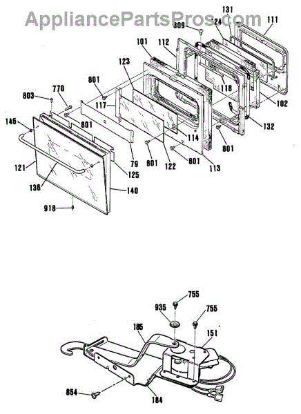 This oven door latch assembly secures the door during the self-clean cycle and reports lock status to the control. Replace a worn or failed latch to restore safe locking and reliable self-clean operation.