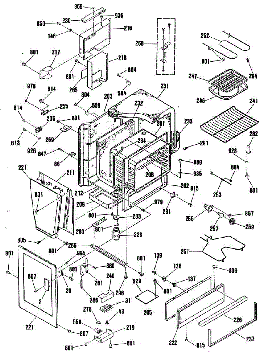 Left side oven door hinge provides smooth opening and closing operation. Replace if cracked, seized, worn, or binding. Mounts to oven cavity interior.
