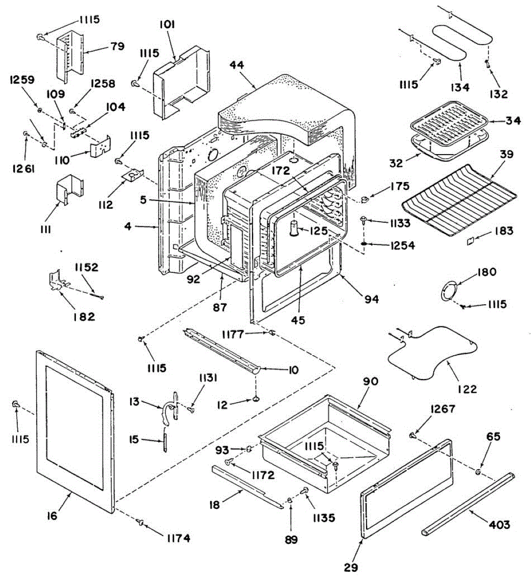 Left side oven door hinge provides smooth opening and closing operation. Replace if cracked, seized, worn, or binding. Mounts to oven cavity interior.