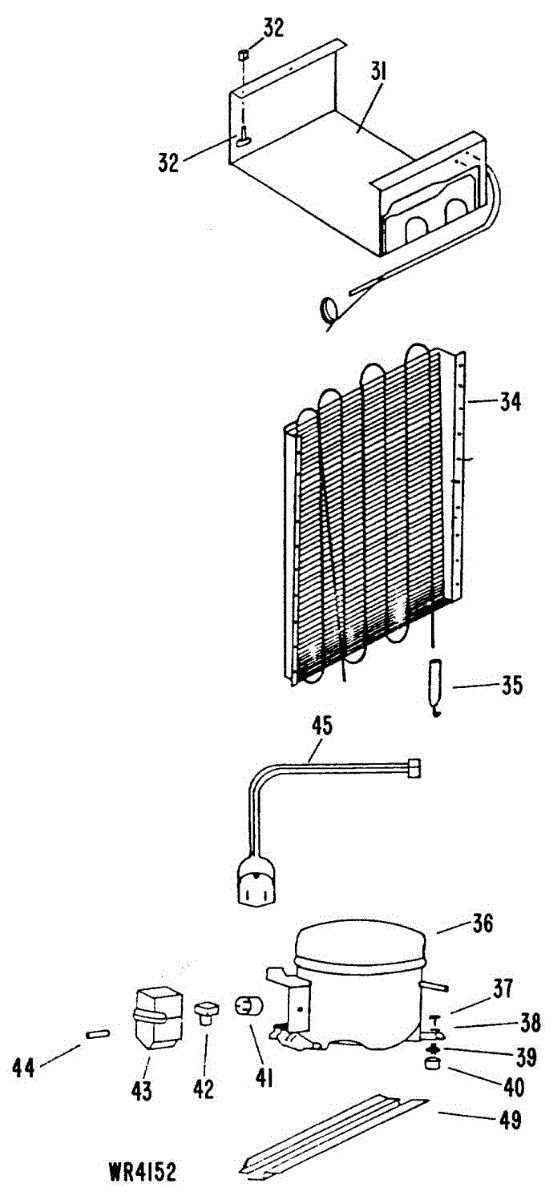 Supplies electrical power from wall outlet to refrigerator. Replace this cord if cut, frayed, overheated, or damaged to restore safe electrical connection.