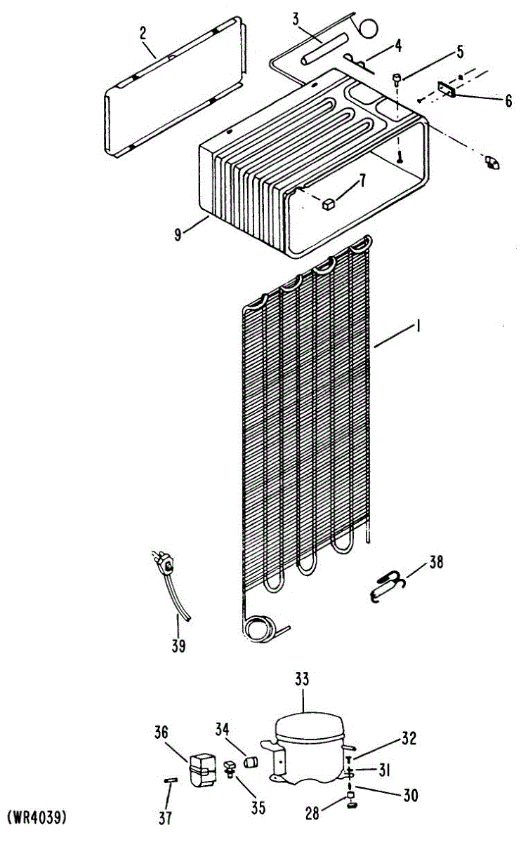 Supplies electrical power from wall outlet to refrigerator. Replace this cord if cut, frayed, overheated, or damaged to restore safe electrical connection.