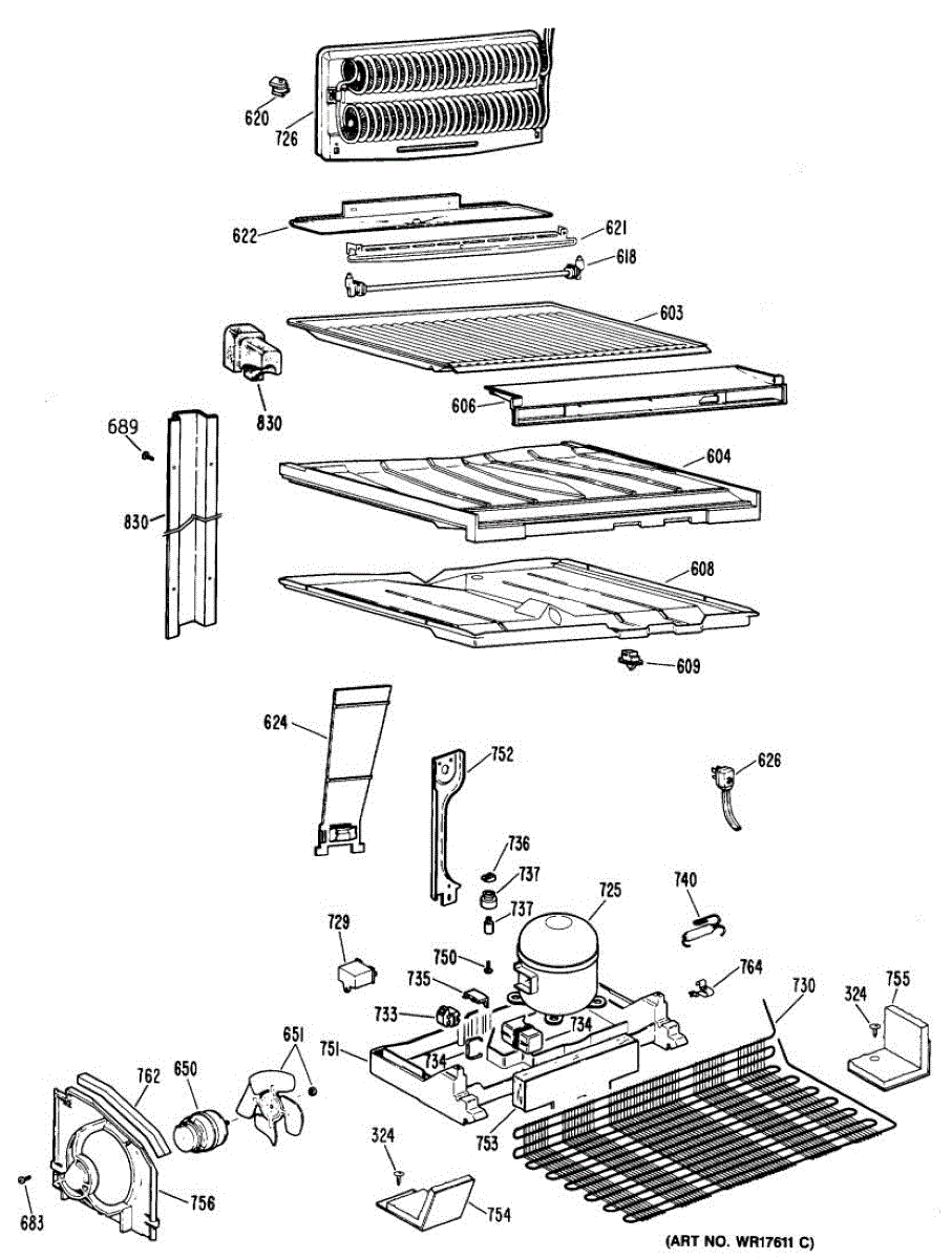 • Remove food, shelves and the evaporator cover/pan as required for access; follow the service manual for your model.