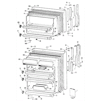 Hardware fasteners for securing refrigerator door panels and components. Includes screws, nuts, and washers for assembly. Replace missing or stripped pieces.