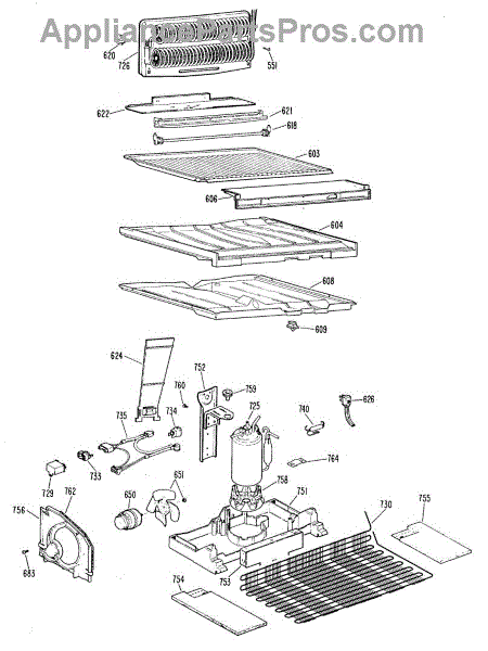 • Remove food, shelves and the evaporator cover/pan as required for access; follow the service manual for your model.