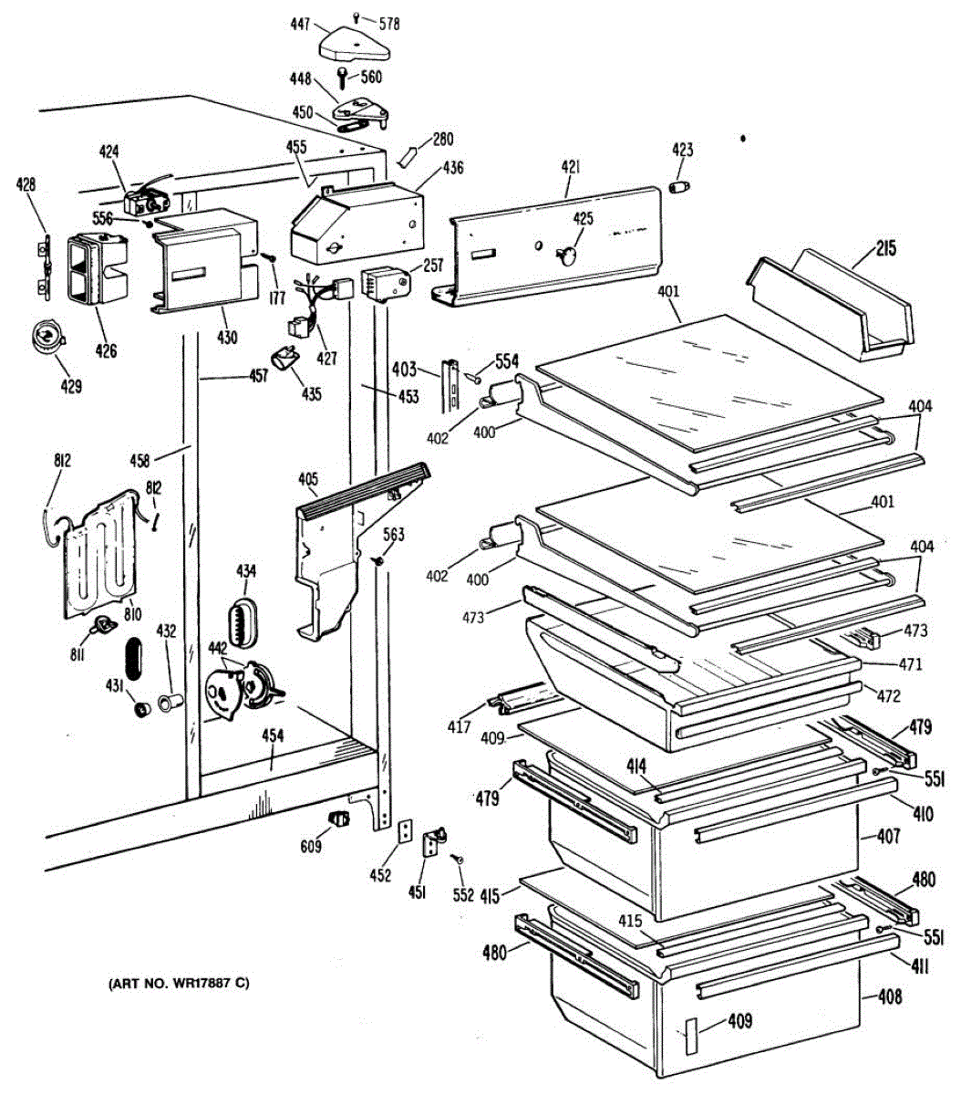 The left Drawer Rail Slide is an OEM part for GE refrigerators. It provides smooth sliding action for refrigerator drawers, ensuring easy access and optimal storage management. This component guides the drawer in and out, preventing misalignment and supporting the weight of the drawer and its contents. It measures approximately 14 7/8 inches long.