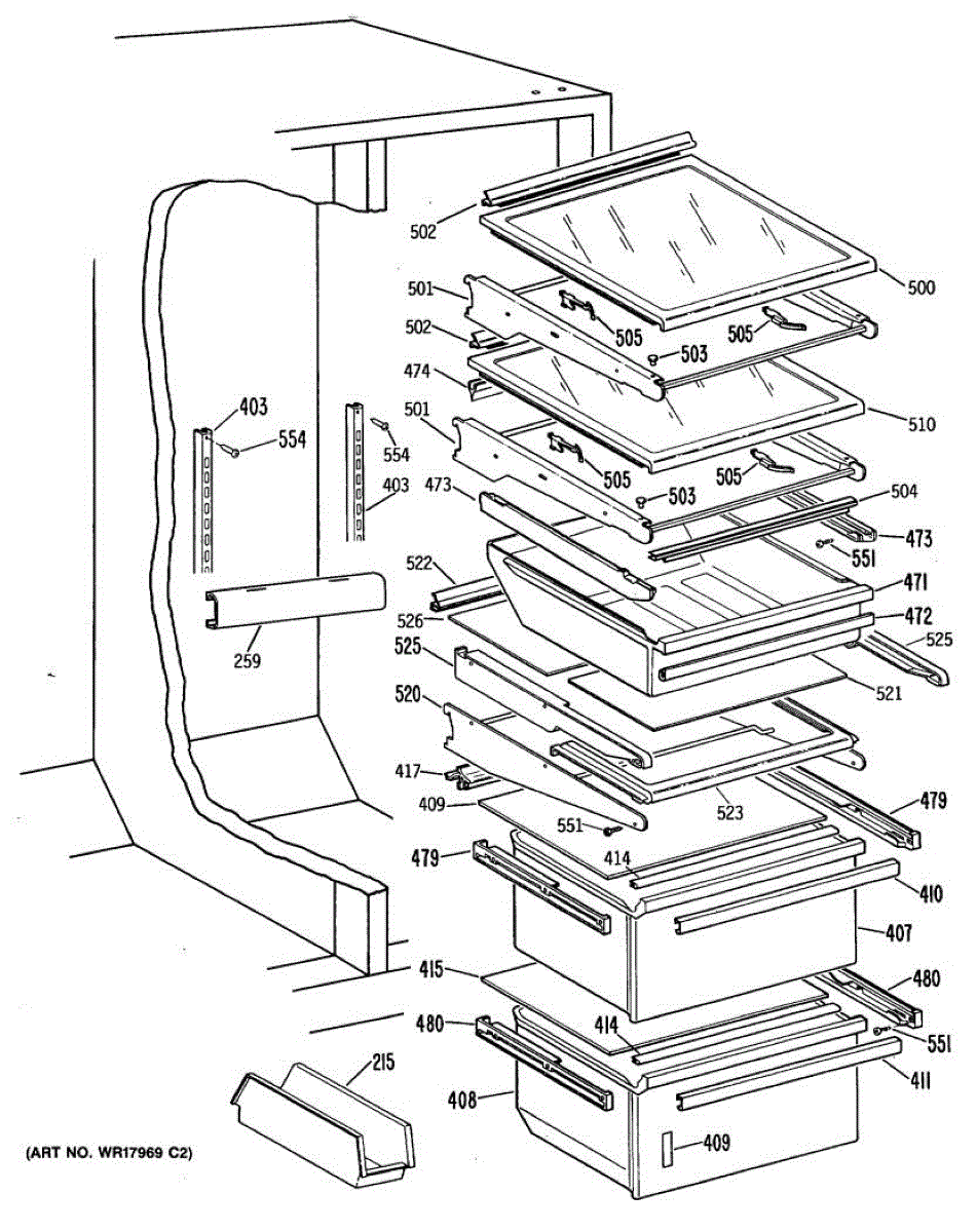 Causes for a malfunctioning Crisper Drawer Slide can include wear and tear from regular use, the accumulation of debris obstructing the slide's path, or damage incurred from overloading the drawer. This GE replacement part is also compatible with Hotpoint, RCA, and some Kenmore models. For matching left-hand side order WR72X209.